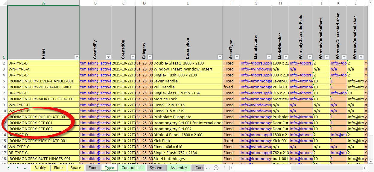 COBie Doors, Assemblies and Ironmongery