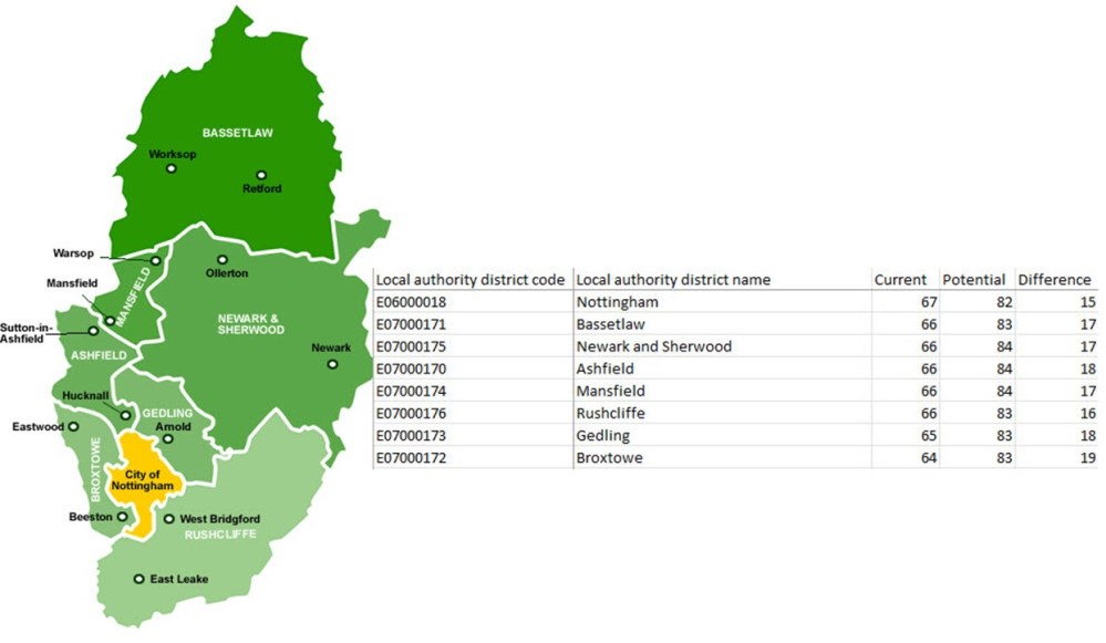 I live in the borough of Broxtowe which consists of some 20 wards. Broxtowe is in Nottinghamshire one of 8 constituencies and is bottom of the performance table when it comes to EPC grades. (source ons.gov.uk)