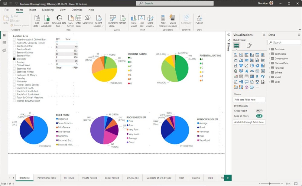 In this article I explain how I used the open data community EPC data to do some data analysis creating a visual dashboard using a range of tools like spreads sheets, google maps and Power BI.
